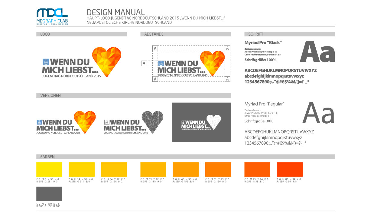 Zum Thema Liebe hat MDGL eine Reihe an Logos entwickelt, welche die vielseitigen Aspekte der Liebe darstellen sollten. Von den 12 Vorschlägen hat sich das Jugendtags-Gremium für das facettenreiche Herz entschieden, welches mit dem Motto "WENN DU MICH LIEBST..." unterstützt wird. Um die gesamte Veranstaltung medial präsentieren zu können, hat MDGL eine Reihe an Videos wie Trailer, Opener, Zwischensequenzen und Hintergrundanimationen erstellt.